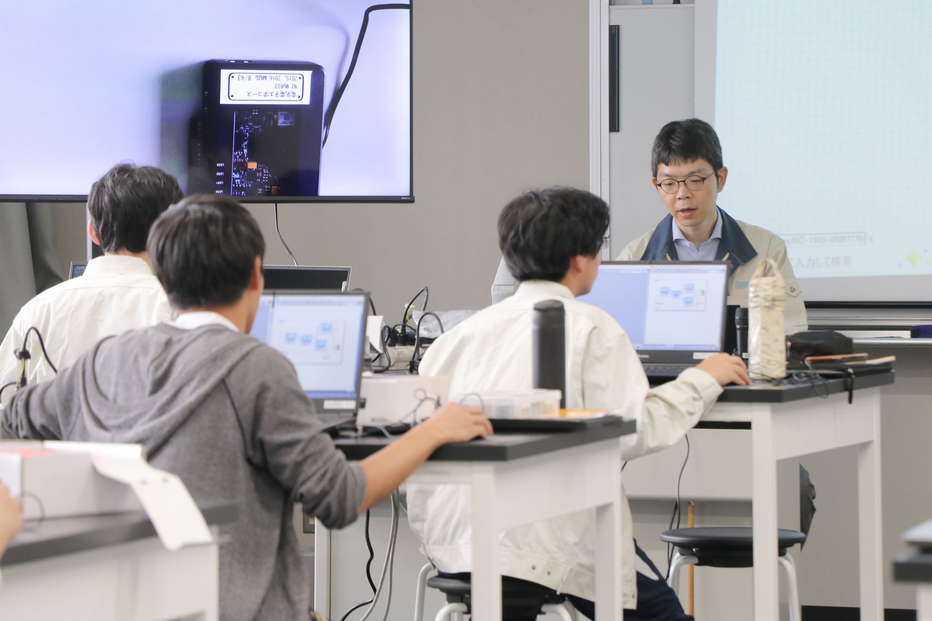 電気電子エネルギー工学コースの授業で使用する設備(部屋、機材、ソフトウェア)を紹介します。