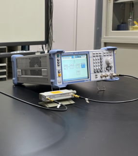 スマホなどに使われている電磁波に関する実験が可能な実験室です。無線信号をどんな波の形でも生成できるベクトル信号発生器と、空気中を飛んでいる無線信号を波の振動数ごとに分解して強さを測定するスペクトルアナライザが備えられています。なお、この実験室は、放課後は自習室として開放されています。