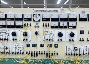 モータや発電機の実験を行う部屋です。モータは、カメラ、スマホ、MRI、パワーアシストスーツ、プール、電車と様々な用途で動力源として応用されています。この実験室では、4年生が、三相誘導モータの特性測定と、同期発電機の並行運転試験を行っています。